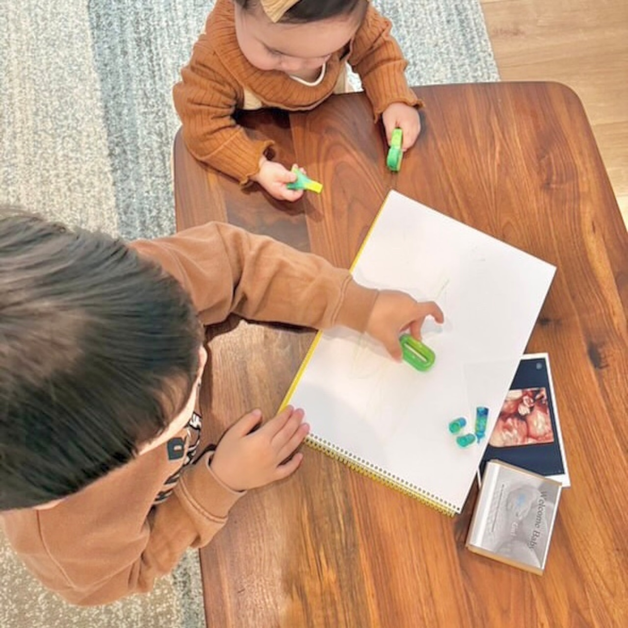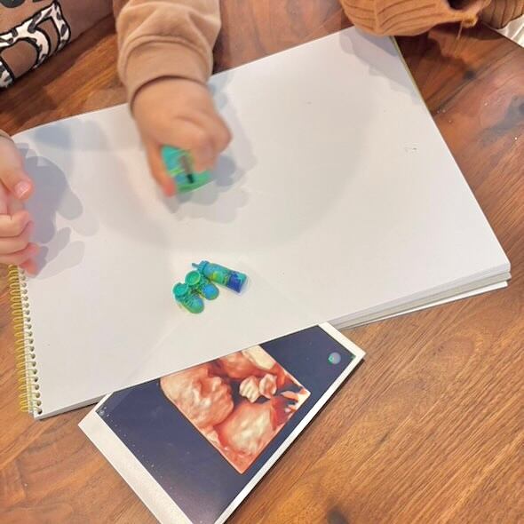 ジェンダーリビールクレヨンを使ってお絵描きしていただけます。